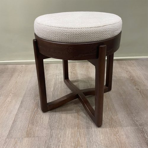 Puff de fabricacion nuestra con estructura en caño redondo con terminacion en pintura negra al horno combinado con cromado. Tapizado en pana antimanchas color gris.