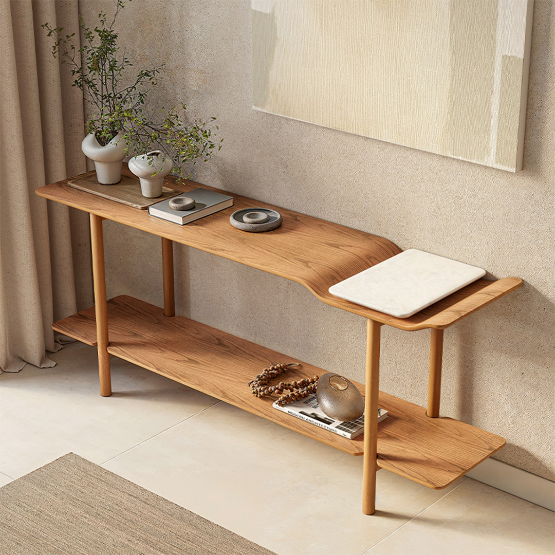 Consola importada en madera de roble termoformada a poro abierto. Tapa con detalle en mármol carrara.