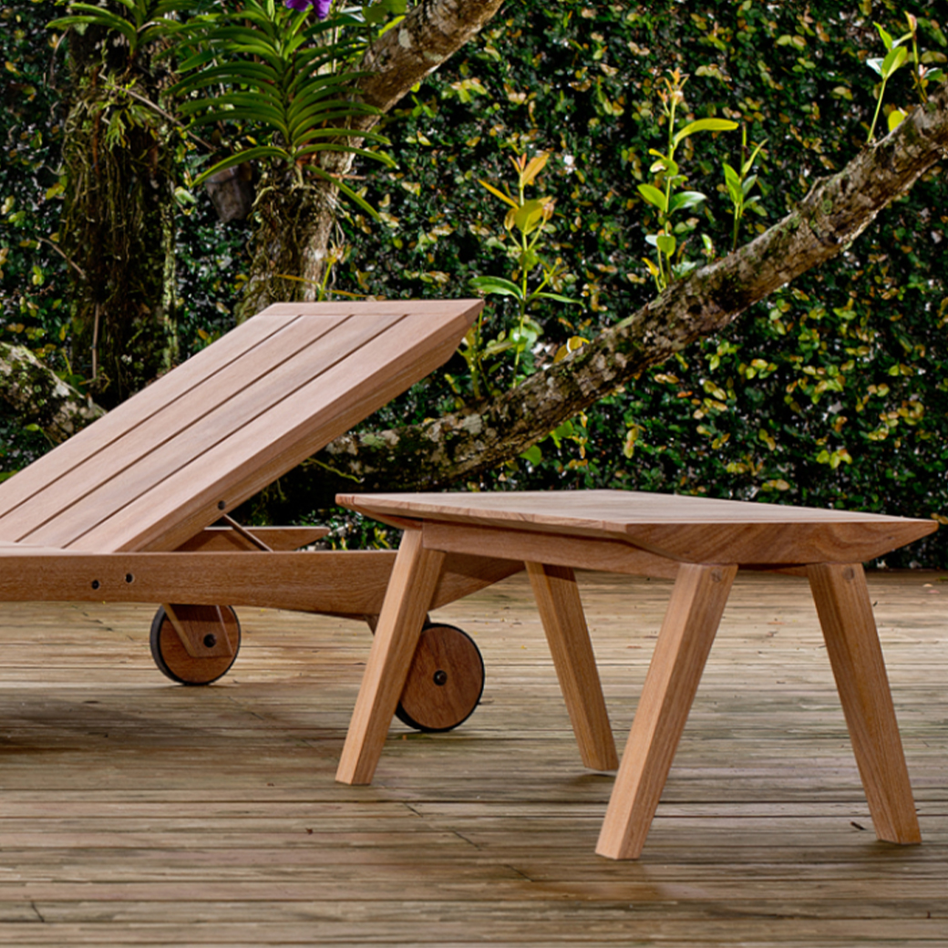 Mesa de centro auxiliar importada apta intemperie/galeria/semicubierto fabricada en madera con procesos PPE