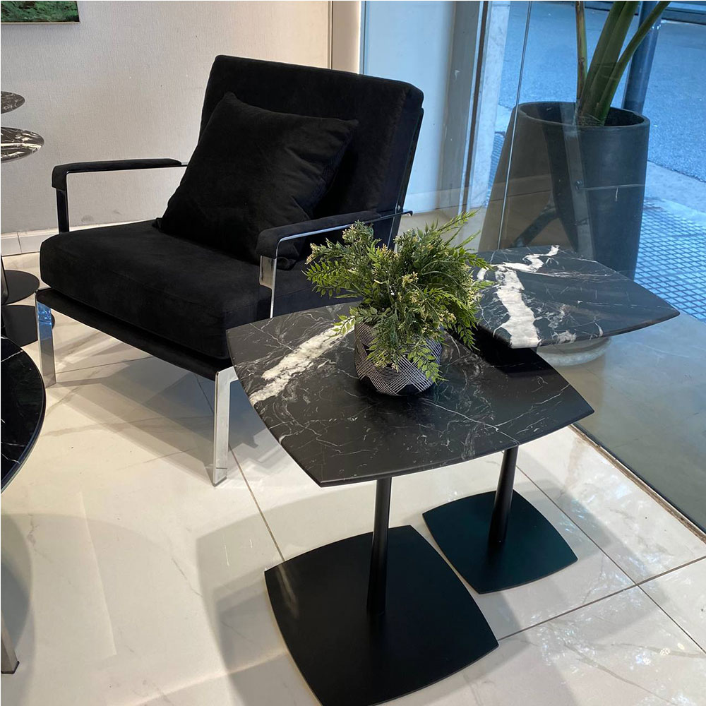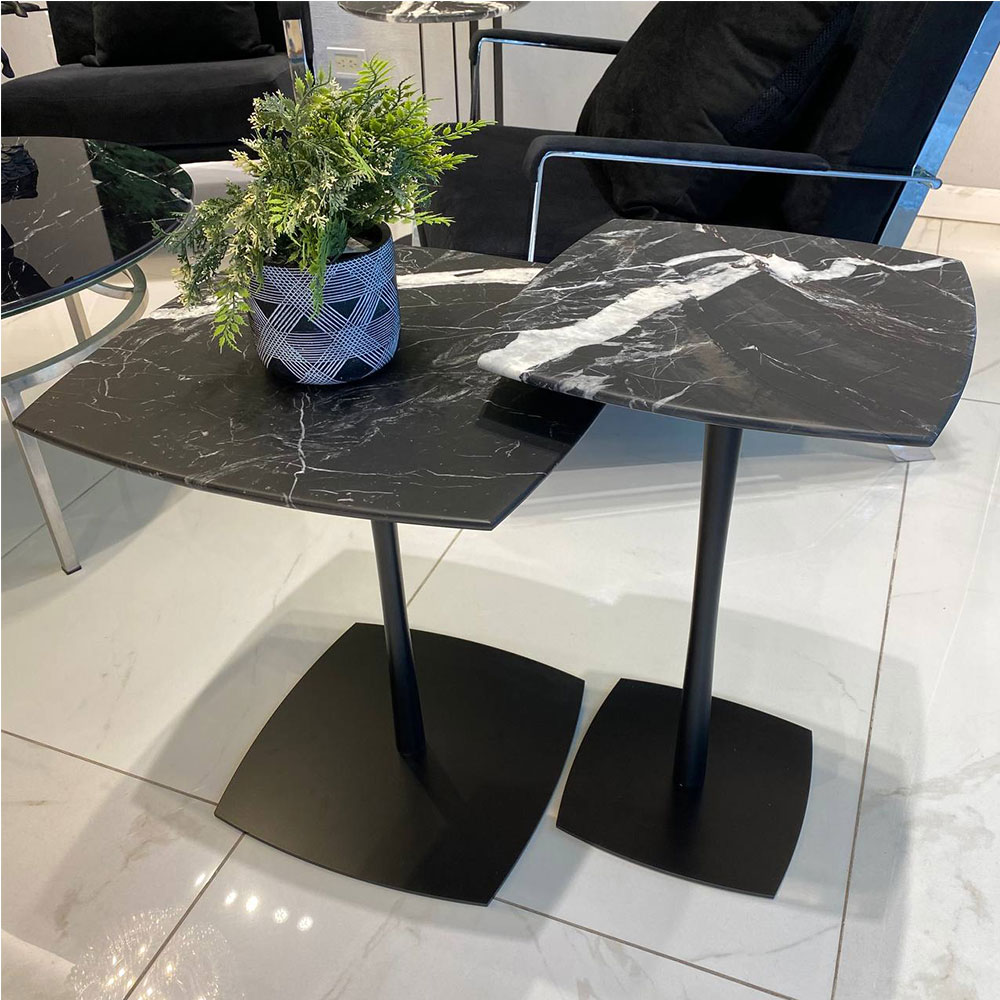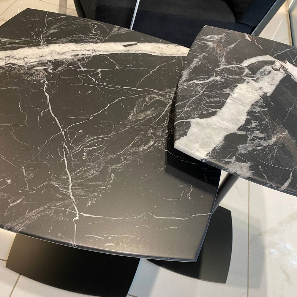 Set mesas laterales tapa piedra simil marquina y vidrio.